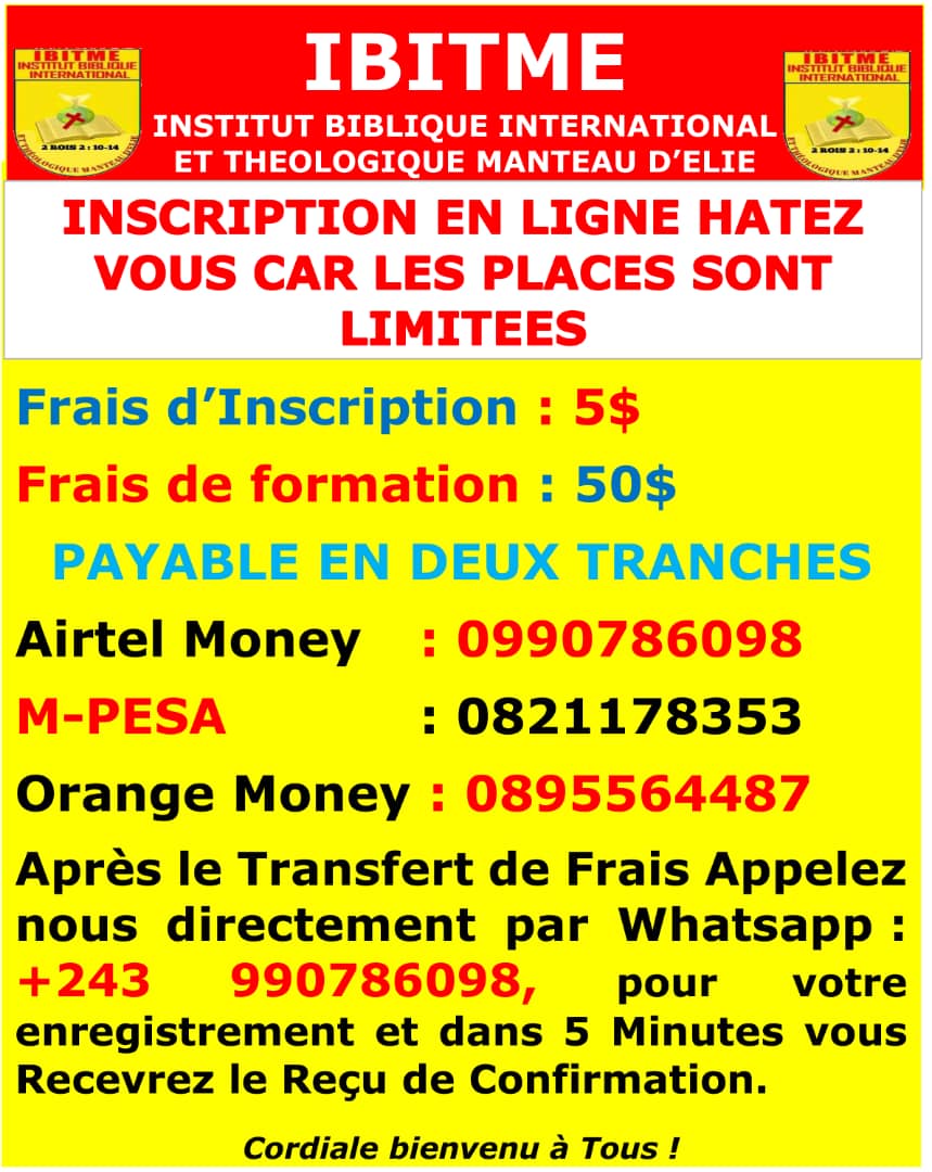 🎓 Rejoignez nous pour 2 ANS de Formation en Théologie Pratique de la Bible : En ligne ☎️ dans un Groupe WhatsApp :(+243)990786098