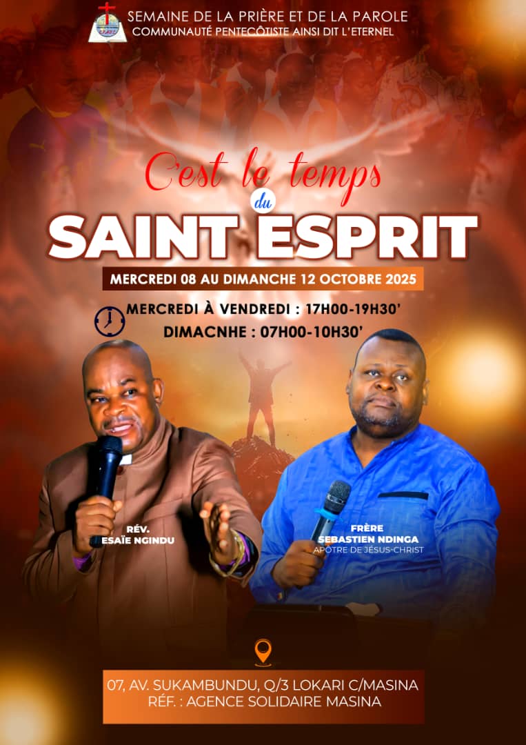 Rejoignez-nous à L' ÉGLISE AINSI DIT L' ÉTERNEL Du Mercredi 8 au Dimanche 12 Octobre 2025 de 17 HOO À 19 H30 pour Vivre le Mouvement du Saint Esprit 🔥 comme au Temps de l' Église Primitive.